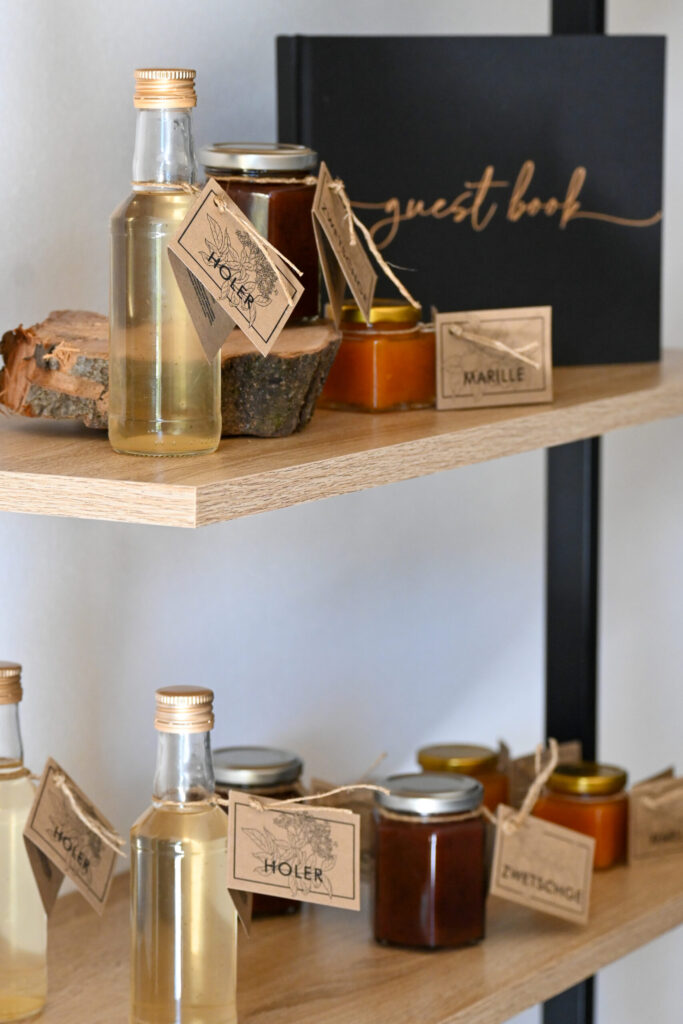 Trovate i nostri prodotti direttamente nello scaffale all’interno del vostro alloggio. Potete prenderli in qualsiasi momento, in modo semplice e spontaneo – proprio come in un piccolo minibar. Tutti i prodotti sono contati e al momento della partenza verranno addebitati in base al consumo. Non dovete preoccuparvi di nulla – prendete semplicemente ciò che desiderate. Così potete gustare i sapori del Pitzoler Hof già durante il vostro soggiorno – oppure portare con voi un ricordo a casa.